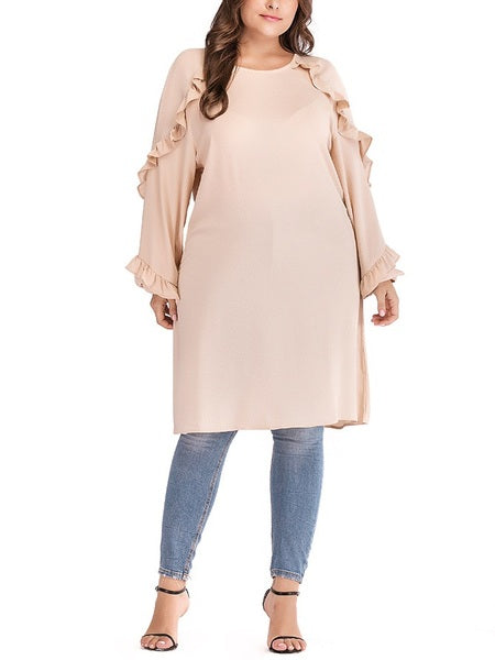 Plus Size Peplum Long Sleeve Shirt Blouse (EXTRA BIG SIZE)