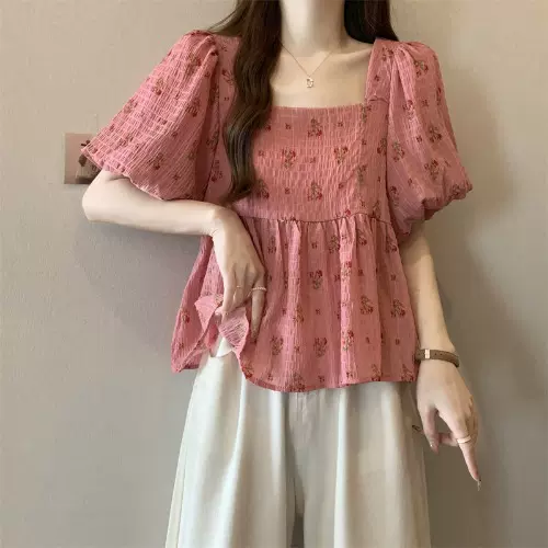 Plus Size Square Neck Korean Floral Peplum Blouse